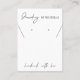Minimalistische Schmuck-Display-Karte mit trendigen Script-Schriftart und minimalistischem Schwarz-Weiß-Hintergrund. Dieses moderne Design der Schmuckhalter hat zwei Ohrring-/Halsketten-Schlitze - bitte beachten Sie, dass dies nur Marker sind und nicht vorgestanzt, können Sie behalten / entfernen Sie die Marker, die Sie benötigen. Fügen Sie Ihr Firmenlogo und Details auf der Rückseite hinzu und Sie haben Ihre individuellen Schmuckkarten für Ihre Ohrringe, Halsketten und sogar Armbänder für Ihre Boutique.