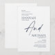 Diese 5" x 7" feierlichen Einladungen zeichnen sich durch ein minimalistisches Design mit marineblau Schriftzeichen aus, mit folgenden Platzhaltern, Ehrenzeichen, Elternnamen, Einführung, Vor- und Nachnamen, Wochentag, Datum, Uhrzeit, Veranstaltungsort, Adresse und Empfang. Die Einführung lautet "lade dich zur Hochzeit ihrer Tochter ein."