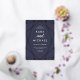 Diese stilvolle Hochzeitseinladung besticht durch eine goldene Rose, modernes geometrisches Design auf dunklem, dunkelblauen Hintergrund mit eleganter Kalligrafie.