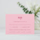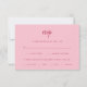 Diese eleganten, minimalistischen Hochzeitskarten zeichnen sich durch moderne Schrift-Typografie und einen sauberen, serifenlosen Text aus, der Ihnen ein schlichtes und stilvolles magentafarbenes Rot- und Rosa-Design verleiht. Es gibt Platz, um Ihren Gästen die Wahl zwischen Vorspeise oder Abendessen hinzuzufügen.