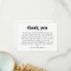 Dankbarkeit mit dieser minimalistischen Hochzeitskarte, die mit einem sauberen weißen Hintergrund und fett schwarzer Typografie für einen zeitlosen, modernen Look entworfen wurde. Das einfache Layout behalte Ihre herzliche Botschaft in der Mitte und ist somit ideal, um nach einem großen Tag Ihre Familie und Freunde zu schätzen.