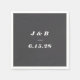 Feiern Sie Ihren besonderen Tag mit diesen personalisierten Hochzeitsnapkins mit einem modernen Monogramm und einem Hochzeitsdatum in einem stilvollen Serif-Schriftart auf einem weichen schwarzen Hintergrund. Diese Servietten eignen sich ideal für Hochzeitsfeiern, Brautpartys, Verlobungsfeiern und Jubiläumsfeiern und sorgen für eine raffinierte und maßgeschneiderte Touch. Personalisieren Sie Ihre Initialen und das Datum, um ein einzigartiges Detail für Ihr Tablescape zu erstellen.
