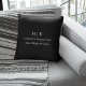 Modernes Minimalistisches Kissen. Schwarz & Weiß oder wählen Sie Ihre eigenen Farben. Ideal für kleine Unternehmen, Firmenmarken, Selbstständige, Online-Verkäufer Zuhause Office und vieles mehr. Einfach mit Ihren Monogramm-Initialen, Firmennamen und Informationen, Jobtitel, Slogan oder sogar mit Ihrem Logo oder persönlichem Markendesign personalisieren.
