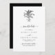 Eine minimalistische tropische Palmen monogramm Hochzeitsgestaltung. Ein einfaches Design, das eine Skizze einer Palme verwendet, um ein elegantes klassisches Monogramm zu erstellen. Ein charmantes tropisches Stranddesign in Schwarz/Weiß mit rustikalen Strichen und klassischer Schriftzeichen. Eine elegante Hochzeit zum Thema Küstenstrand bewahrt das Design der Dattelkarte mit modernen Elementen. Auch die passenden Hochzeitseinladungen und andere Schreibwaren sind verfügbar.