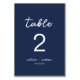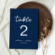 Minimalistische Navy-Script-Hochzeit Tischnummer
