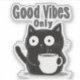 Diese stilvolle und charmante Illustration zeigt eine niedliche schwarze Katze mit einer dampfenden Tasse Kaffee mit dem aufregenden Satz "Good Vibes Only" in fett gezeichnet Typografie. Die einfarbige Palette hebt die minimalistische und trendige Ästhetik hervor, die sich ideal für Kaffeeliebhaber und Katzenliebhaber eignet. Das Kunstwerk strahlt Positivität und Gemütlichkeit aus, perfekt für die tägliche Motivation.