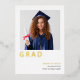 Minimalistisch Grad 2025 Real Gold Foil Ankündigung. Einfache Eleganz mit realer Folie für Typografie Grad, unter Ihrem Foto, und auch für den Namen Ihres Absolventen mit der Erholung des Textes in schwarz. Personalisieren Sie den Text einfach mit Ihrer Nachricht auf der Rückseite und tauschen Sie das Beispiel-Foto durch Ihr eigenes aus.