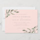 Chic Fest im Freien?Ja! Diese botanische Hochzeitseinladung ist perfekt für solche Anlässe. Mit zwei Aquarellböden und einem subtilen pastellrosa Hintergrund. Eine minimalistische Serifentypografie zeigt Ihre Hochzeitsdetails. Umkehrung zu schlauer grünem Hintergrund.