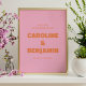 Mit diesem modernen, minimalistischen Willkommensschild, das eine kräftige Typografie und ein gepflegtes Rosa- und Orangendesign aufweist, verleiht dieses personalisierte Hochzeitsschild der Liebe eine stilvolle Touch für Ihre Zeremonie oder Ihren Empfang und sorgt für einen herzlichen und unvergesslichen Empfang.