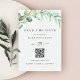 Diese moderne Save the Date-Karte verbindet romantische Vegetation mit minimalistischem Layout und individuellem QR-Code. Sie können den Code einfach scannen, um auf Ihre Hochzeitswebsite oder UAWG zugreifen zu können. Eine perfekte Mischung aus Natur und Bequemlichkeit, ideal für elegante Hochzeiten im Garten oder draußen.