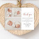 Einfache moderne Elegante Rose Gold Script Neugeborenen Baby 3 Foto Collage Vielen Dank Postcard. Mit einem wunderschönen "Dankeschön"-Text in einer kursiven handgeschriebenen Kalligrafie Swash Schwanz Schriftart-Skript in Imitate Rose Gold-Folie (oder rot rosa Folie) und vorgefertigte persönliche Nachricht. 3 Foto vorne und hinten (1) ein volles, waagerechtes Baby-Foto (mit weißem Overlay). Ideal für kleine Mädchen. Einfach mit Ihrem Baby Foto und Details personalisieren.