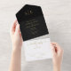 Minimalistische Schwarz-Gold-Monogramm-Hochzeit All In One Einladung