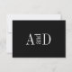 Diese einfache, aber schicke Karte beinhaltet eine Auswahl an Speisen für Ihre Gäste. Die Speisen sind essbar. Schwarze Rückseite mit weißen Initialen. Dieses Design wird von unserer "Modern Chic Black and White Wedding Collection" inspiriert.