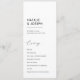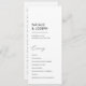 Lass den feierlichen Führer mit diesem zeitlosen Schwarz-Weiß-Hochzeitsprogramm. Dieses minimalistische Design besticht durch eine gepflegte Gestaltung und elegante Schriftart, die Ihren Gästen einen angenehmen Aufenthalt garantieren. Das klassische Farbschema fügt eine Touch von Eleganz hinzu, die sich perfekt für eine traditionelle katholische Hochzeit eignet. Dieses Programm ist ideal für Paare, die einen einfachen und eleganten Weg suchen, ihren Glauben an ihren Hochzeitstag zu ehren.