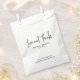 Moderne Gastgeschenk Hochzeit Taschen mit einem einfachen Design mit "Liebe und Dank" in einer eleganten Schrift Typografie und Ihre Namen und Hochzeiten Datum in einem minimalistischen sans Serif Schriftart. Alle Designelemente sind schwarz und weiß. Diese schicken Gefälligkeitssäcke verleihen jedem Hochzeitsstil eine schöne Touch.