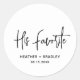 Moderne Gastgeschenk Hochzeit Aufkleber mit einem einfachen Design mit "Seinem Favoriten" in einer eleganten Schrift Typografie zusammen mit Ihren Namen und Hochzeitsdatum in einem minimalistischen Sans Serif Schriftart. Alle Designelemente sind schwarz und weiß. Ein elegantes Design für jeden Hochzeitsstil. Diese Sonderaufkleber eignen sich hervorragend zum Anziehen von Süßigkeiten oder Snacks im Bräutigam als Teil einer Goodies-Tasche/Gastgeschenke Hochzeit.