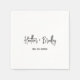 Moderne Hochzeitsserviette mit einem einfachen Design mit Ihren Namen in einer eleganten Schrift Typografie und Ihrem Hochzeitsdatum in einem minimalistischen Sans Serif Schriftart. Alle Designelemente sind schwarz und weiß. Diese schicken Hochzeitsnapkins funktionieren mit jedem Hochzeitsstil.