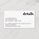Minimalistische Schwarz-Weiß-Hochzeitsdetails Begleitkarte