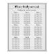 Unsere 20"x25" Sitzkarte aus der minimalistischen Kollektion bietet ein vollständig anpassbares Schwarz-Weiß-Design, das perfekt zu Ihrem Hochzeitsszenario passt. Mit seiner eleganten Serifentypografie und der gepflegten Gestaltung trägt dieses elegante Diagramm dazu bei, dass Sie sich bequem auf die Sitzplätze des Empfangs vorbereiten können, was zu einer raffinierten Touch der Dekoration führt.