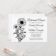 Feiern Sie Ihre Hochzeit mit unserem eleganten Probe Dinner in Schwarz und Weiß. Diese charmante Einladung besticht durch wunderbar illustrierte Sonnenblumen und Wildblumen und eignet sich somit ideal für eine minimalistische oder Vintag inspirierte Feier. Das zeitlose Schwarz-Weiß-Design besticht durch seine Eleganz und eignet sich ideal für rustikale Ansammlungen, botanische Party oder moderne Veranstaltungen. Ob Sie im Frühjahr, Sommer oder Herbst ein Probe-Dinner planen, diese Einladung Set den Ton mit seiner schönen Mischung aus Einfachheit und Eleganz. Erleben Sie ein unvergessliches Erlebnis mit dieser schönen Einladung!