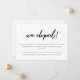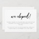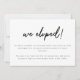 Minimalistische Schwarz & Weiß Script Elopement Ankündigung. Passen Sie Ihre Nachricht für Familie und Freunde an der Vorderseite an, und fügen Sie Bräute und Bräutigam-Initialen auf der Rückseite der Karte hinzu.