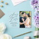 Verkünden Sie Ihre bevorstehende Hochzeit im Stil mit unserem eleganten Minimalistischen Kalligraphie-Foto speichern Sie die Daten. Die Datumskarten werden "Save the Date" in einem eleganten, schwarzen Kalligraphieskript mit mattiertem oder transparentem Acrylhintergrund gespeichert. Personalisieren Sie das Acryl Save the Date mit Ihren Namen, Hochzeitsdatum, Standort, und vertikale Verlobung Foto.