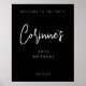 Elegantes, einfaches schwarzes Willkommensschild wird zum Geburtstag großartig sein. Die Anmeldung kann mit einem individuelle Name, Anzahl der Jahre, Veranstaltungsdatum oder anderen Einzelheiten personalisiert werden. Sie können auch Schriftart- und Hintergrundfarben ändern.