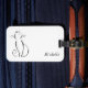 Minimalistische schwarze Katze auf einem weißen Gepäckanhänger. Personalisieren Sie dieses elegante Gepäckanhänger mit Ihrem Namen.