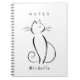 Minimalistische schwarze Katze auf einem weißen Notizbuch. Personalisieren Sie dieses elegante Notebook mit Ihrem Namen.