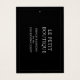 Ein minimalistischer Anhänger für Ihre Mode-Boutique oder Online-Bekleidungsfirma. Das stylische schwarz-weiß hängende Preisschild lässt sich leicht an Ihre geschäftlichen Bedürfnisse anpassen. Ihre Kunden werden die Liebe des puristischen Designs, das ihnen die Informationen gibt, die sie suchen. Die Vorderseite ist schwarz und wo Sie Ihren Firmennamen und Ihre Tagline hinzufügen. Auf der Rückseite können Sie den Text bei Bedarf bearbeiten.