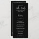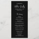 Modernes Schwarzes Hochzeitsprogramm mit einem einfachen Design mit Ihren Namen in einer eleganten Skripttypografie und Ihren Veranstaltungsdetails in einem minimalistischen Sans Serif Schriftart. Dieses schicke Hochzeitsprogramm passt gut zu jedem Hochzeitsstil.