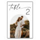 Fügen Sie Ihrer Hochzeitsfeier eine persönliche und elegante Touch mit dieser minimalistischen Schwarz-Weiß-Tischnummer-Karte hinzu. Diese Tischnummer mit einem stilvollen Script-Schriftart und der Möglichkeit, ein Arch-Foto einzuschließen, eignet sich hervorragend für zeitgenössische, neutrale oder hochkarätige Hochzeiten. Ideal für Paare, die ein sauberes, einfaches Design mit einer persönlichen Drehung Liebe. Tischnummer und Foto können Sie ganz einfach an Ihren besonderen Tag anpassen, um Ihren Anzug zu gewährleisten.