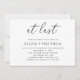 Diese elegante Schwarz-Weiß-Einladung enthält den romantischen Satz "At Last" in zarter Schrift. Das minimalistische Layout und die raffinierte Typografie schaffen ein sauberes und zeitloses Aussehen, das Anzug einer breiten Palette von Hochzeitsstilen. Auf der Rückseite befindet sich ein individualisierbarer QR-Code, der sich hervorragend eignet, um auf Ihre Hochzeitswebsite, Ihr UAWG, Ihre Registrierung oder Ihre Veranstaltungsdetails zu verlinken. Ob Sie ein Paar sind, das Ihren besonderen Tag planen oder ein Event-Planer für einen Kunden planen, diese Einladung ist voll editierbar und sowohl in gedruckter als auch in digitaler Form erhältlich. Eine schöne Wahl für romantische, minimalistische oder zeitgenössische Hochzeiten.