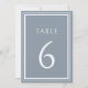 Elegante minimalistisch staubige bläuliche Magnolia Blumen Hochzeit Tischnummern.