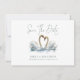 Minimalistische Swan-Script-Hochzeit. Verfügbar in digitaler Form und gedruckt. Moderne Eleganz für dieses elegante Design mit Aquarellbildern. Save the Date ist in einem stilvollen Set-Skript. Personalisieren Sie die Erholung der Wörter ganz einfach nach Bedarf.