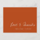 Minimalistische Terracotta Rost Hochzeit Liebe und Dank Postcard. Versenden Sie diese elegante minimalistische Hochzeit Dankeschön an Freunde und Familie Hochzeitskarten, um ihnen Ihre Dankbarkeit für den Besuch Ihres besonderen Tages zu zeigen. Das Design hat Terrakotta Rost Hintergrund mit Text in weiß geschrieben . Dies ist eine niedliche, einfache Dankeschön-Karte, die angepasst werden kann, indem die Namen des Paares und das Hochzeitsdatum geändert werden. Die Rückseite der Karte hat eine personalisierte Meldung. Für weitere Anpassungen wenden Sie sich bitte an mich unter mypaperlove2021@gmail.com
