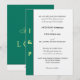 Sommer tropischen Strand Hochzeitsvibe. Minimalistische grüne Grenze mit den Mit Monogramm Initialen des Paares in pastellgelb. Braut und Groom Namen in Großbuchstaben schwarze Typografie. Auf der Rückseite befinden sich die Datumsangaben in schwarz auf weißes, schwarzes geometrisches Rechteck. Zusammen in der Liebe ist in Gelb geschrieben vor solidem grünem Hintergrund. Original Design © TamiraZDesign.