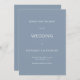 Minimalistische Typografie Dusty Blue Wedding. Die Farbe und der Typ des Schriftartes können über das Menü Bearbeiten geändert werden. Sie können auch Text- und Hintergrundfarben auf beiden Seiten ändern, wenn Sie möchten.