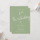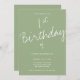 Eine erste Geburtstagsfeier mit minimalistischem Typografie-Design. Die Einladung hat ein schlaues grün-weiße Farbschema. Sind Sie bereit, Ihre Gäste zu der Feier einzuladen? Fügen Sie einfach Informationen hinzu, fügen Sie diese Einladung in Ihren Warenkorb, dann genießen Sie Ihr Baby's erste Geburtstag! Minimalistische Typografie Baby Erstgeburt Einladung Holidayday Design | Melissa Patton - Designer