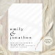 Minimalistische Typografie Hochzeit Schwarz-weiße Hochzeit. Verfügbar in digitaler Form oder gedruckt. Ein informeller, zeitgenössischer Stil mit viel weißem Raum für minimale Eleganz! Ihre Namen sind groß in stilvollen Kleinbuchstaben mit den Details unten. Personalisieren Sie den Text einfach auf Ihre eigenen Daten. Vollständig anpassbar. Sie können Text- und/oder Hintergrundfarben ändern, wenn Sie möchten, indem Sie die Option Weitere bearbeiten verwenden.