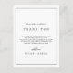 Diese minimalistische Typografie danke Ihnen Empfang-Karte ist perfekt für eine einfache Hochzeit. Das moderne romantische Design besticht durch klassische schwarz-weiße Typografie. Anpassbar in jeder Farbe. Behalt das Design einfach und elegant, wie es ist, oder personalisiere es durch Hinzufügen von eigenen Grafiken und Kunstwerken. Platzieren Sie diese Karten am Tisch für jeden Ihrer Gäste an Ihrem Hochzeitsempfang. Personalisieren Sie die Karte mit Ihren Namen und einer besonderen Danksagung.