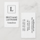 Dieses einfache, minimalistische und einfache Design von Visitenkarten könnte von einem berufliche wie einem Berater, einer Führungskraft, einem Leiter von Unternehmensgedanken oder einem Geschäftsführer verwendet werden. Der Anfangsbuchstabe, Name, Beruf und Kontaktdaten können personalisiert sein.
