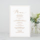 Diese elegante Menükarte aus unserer Gold Minimalistisch Wedding Kollektion zeichnet sich durch ein einfaches Design und einen modernen Script-Schriftart aus. Ideal für jede Jahreszeit. Um vorzeitige Änderungen vorzunehmen, wählen Sie Personalisieren -> Bearbeiten mit dem Entwurfstool.