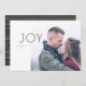 Zeitgenössisches minimalistisches Urlaubsfoto-Design von Shelby Allison mit dem Wort "joy" auf weißem Hintergrund. Foto von freestocks.org zu Unsplash