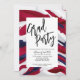 Elegante Minimalistische USA Flag High School Graduation Party Einladung mit amerikanischer Flagge rot, weiß und blau Aquarellfarben abstrakte Design. Diese Party Einladung, die auf hochwertigen Karton gedruckt wurde, wird sicher einen bleibenden Eindruck hinterlassen. #gradpartyInvitation #minimalistcall #graduationparty. Ideal für patriotische, militärische Fledermäuse, ROTC Graduierungsparty. Verwenden Sie unser Design-Tool, um vorhandene Text- oder Designelemente - Name, Text, Foto, Bild oder Logo - anzupassen, zu personalisieren und weiter zu bearbeiten, zu ersetzen oder zu entfernen. Personalisieren Sie Ihre Daten für Ihre Party Einladung-Karte.