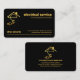 Ein ganz schwarzes Cover wird durch eine goldene Linie des Imitats in der Nähe des Kartensockels hervorgehoben. ; Hier finden Sie Ihren prestigeträchtigen Namen und die Kontaktdaten. In der Nähe der Oberseite ist ein goldenes Logo "Letter-e-Zuhause Bulb Power Plug", das Sie mit dem Firmennamen und einem Slogan am anderen Ende der Karte verwenden können. Der Buchstabe e kann "Elektriker" oder möglicherweise Ihren eigenen prestigeträchtigen Namen darstellen. Oben ist das goldene Logo, gefolgt von Ihrem prestigeträchtigen Namen und den Kontaktdaten. Alle Schriften sind in Imitat Gold. Ein berufliches Design für alle, um besonders elektrische Themen zu verwenden.