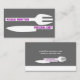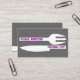 Persönliche Koch minimalistische Visitenkarten Schwarz-weiß, mit einem weißen Messer und einer Gabel auf grauem/grauem Hintergrund und Text in lila. Ideal für Köche, Köche, Koch de Cuisine.