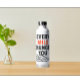 Minimalistische Wandertipps Orangefarbene Schwarz-Text-Wasserflasche.