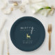 Moderne, dunkelblaue Weihnachtspapiere mit handgemalten Aquarellgolden-Rentieren und moderner Typografie. Die Teller sind modern und minimalistisch. Persönlich für stilvolle Gaben von Leckereien