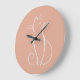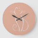 Minimalistische weiße Katze auf rosa Name hinzufüg Große Wanduhr